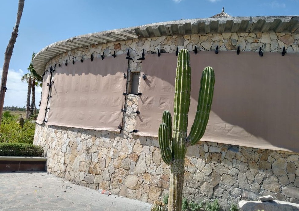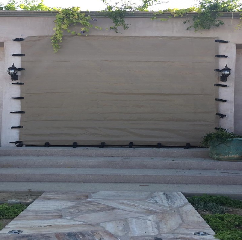 The anticyclonic material is a high strength and strong membrane. Designed to stop hurricane winds and deflect small and large missiles. It's good for the patio.